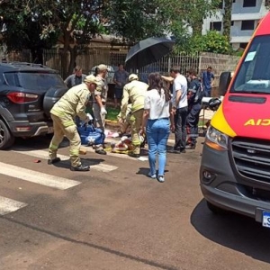 Em Toledo, nesta terça-feira, uma motoneta Biz 125 cilindradas conduzida por uma moça de 27 anos que tinha na garupa uma jovem de 24 anos trafegava pela Rua Formosa e na esquina da General Alcides Etchgoyen no bairro Jardim La Salle colidiu contra um veículo Ford Ecosport.