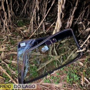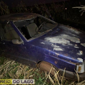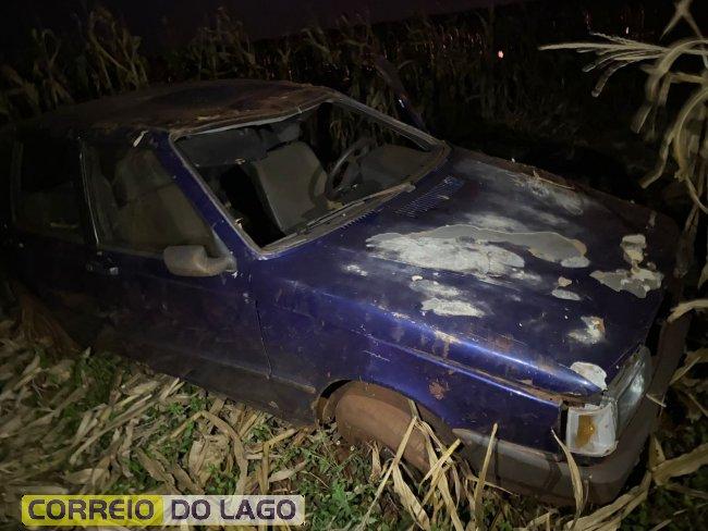 O veículo um Fiat Uno de cor roxa, foi parar em um milharal, próximo a uma curva acentuada da rodovia, após a motorista perder o controle da direção.