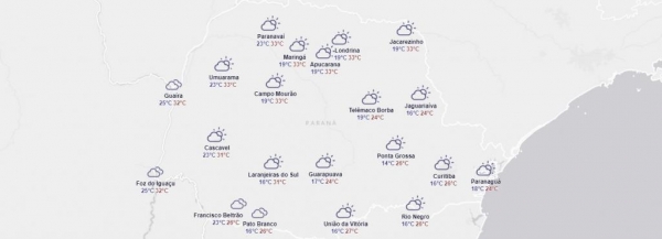 Em Palotina a máxima deve fica em 33° e a mínima 23°, em Toledo a máxima é de 31°C.