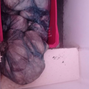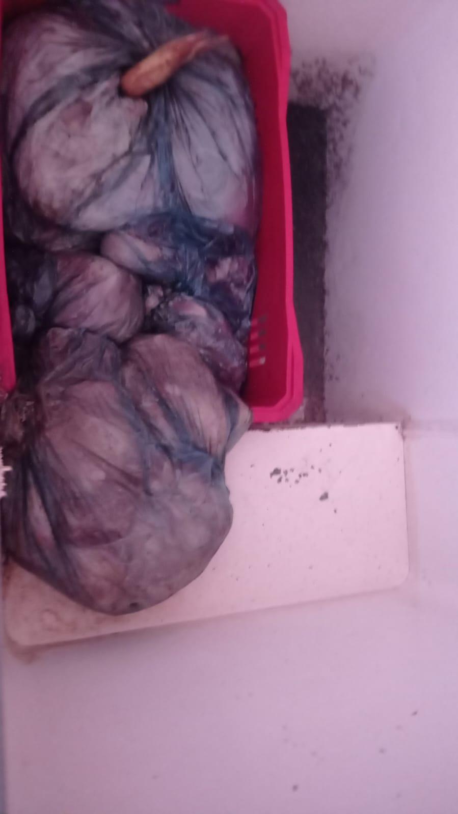 Aparentemente um pacote com carne foi deixado dentro do congelador.