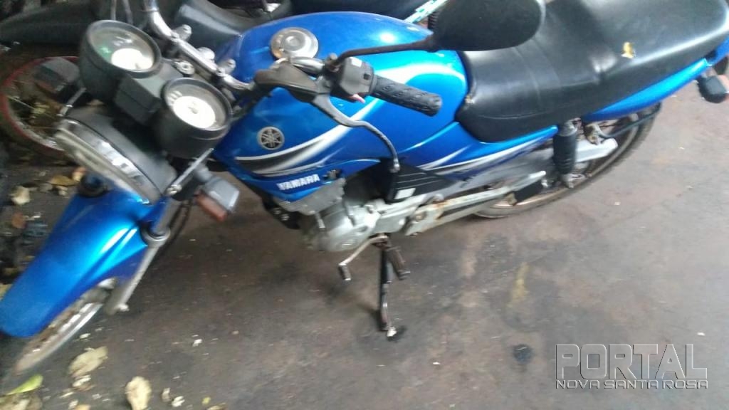 Identificado posteriormente, foi dada voz de abordagem, que em busca pessoal nenhum ilícito foi localizado, porém ao ser consultado a placa da motocicleta Yamaha YBR de cor azul, placas AMD-1519, foi constatado ser produto de furto, conforme boletim de ocorrência do dia 28 de agosto deste ano.