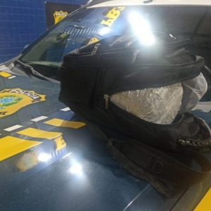 Durante a noite, a equipe policial em ronda localizou abandonado na cabeceira da ponte Ayrton Senna, uma mochila contendo também 3 quilos de droga conhecida como skunk, um derivado da maconha.