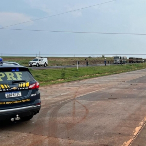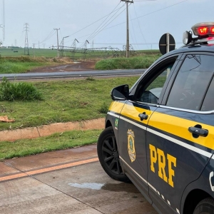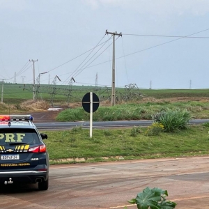 A Polícia Rodoviária Federal (PRF) informa que o Contorno Oeste, em Cascavel, está interditado devido à queda de uma torre de energia elétrica às margens da BR-163, no km 202. A fiação está ocupando toda a pista, que precisou ter o trânsito totalmente interrompido.
