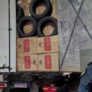 Na madrugada desta sexta-feira (08), a PRF apreendeu um caminhão carregado com cerca de 400 caixas de cigarros contrabandeados.