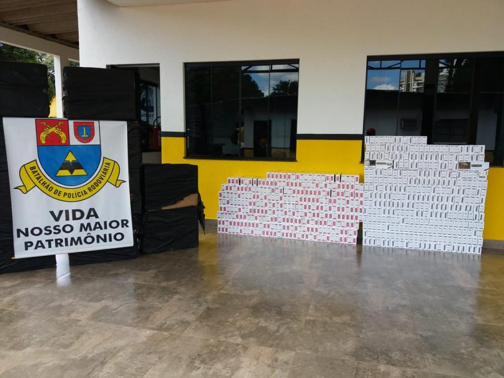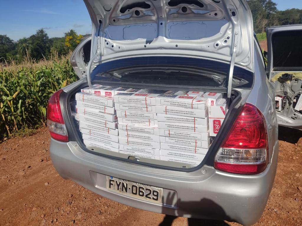 Foi então identificado o veículo Toyota Etios SD com placas do estado de Santa Catarina e constatado que o mesmo estava carregado com cigarros oriundos do Paraguai, que após contabilizados somou a quantia de 1.134 pacotes de cigarros.
