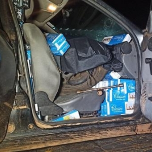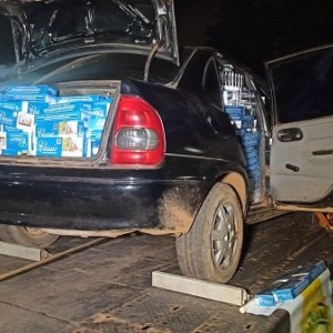 No carro foram localizados 28 caixas de cigarros contrabandeados.