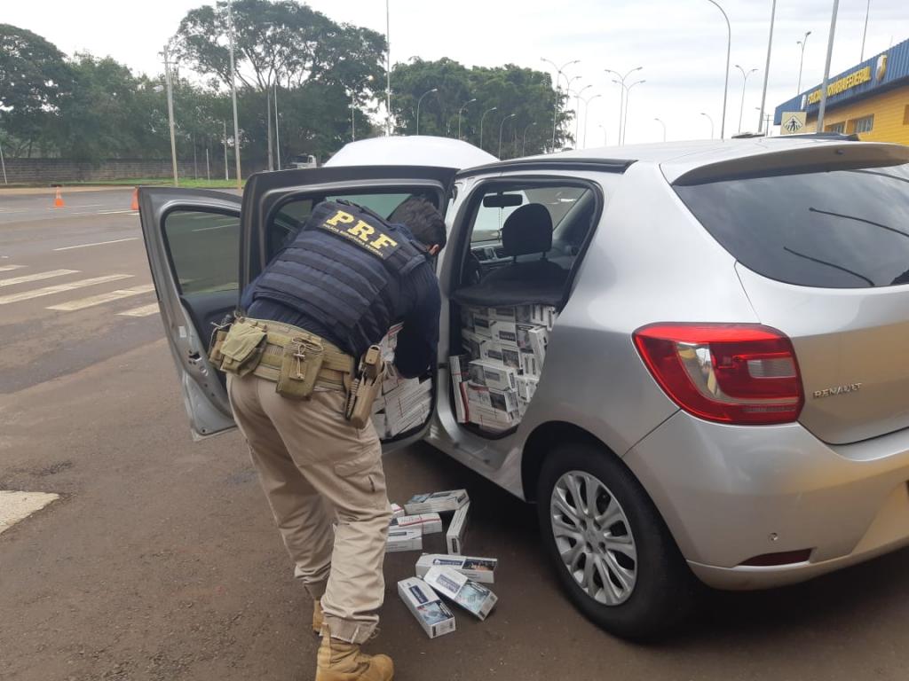 Após localização do veículo, foi constatado em seu interior grande quantidade de cigarros contrabandeados, ocultos por um pano preto de forma a dificultar a sua visualização, estratégia comum entre os contrabandistas.