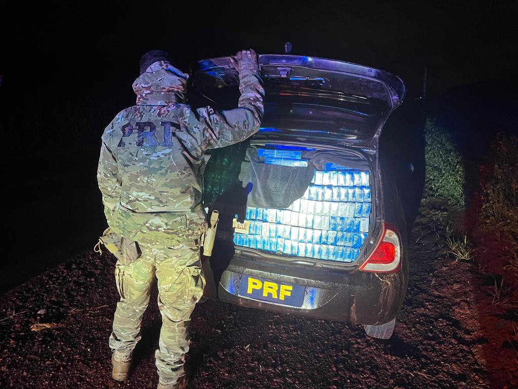 A Polícia Rodoviária Federal apreendeu, na noite de quarta (28), um Renault Clio completamente carregado com cigarros contrabandeados.