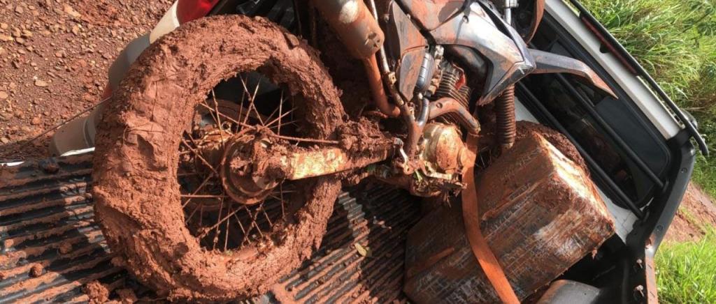 Ao realizar aproximação, perceberam volume preto à mostra em condições similares a de mercadorias de origem estrangeira. Ao perceber aproximação policial o condutor acelerou e foi iniciado acompanhamento tático até que o condutor se evadiu em meio a mata fechada, abandonando a motocicleta e mercadorias.