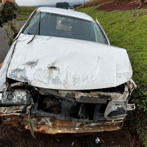 O condutor do utilitário abandonou o carro e contrabando e fugiu em uma lavoura de milho nas proximidades da rodovia, durante a fuga o carro capotou.