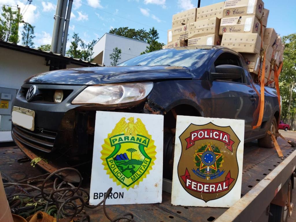 Veículo e contrabando foram encaminhados à delegacia da Polícia Federal em Guaíra.