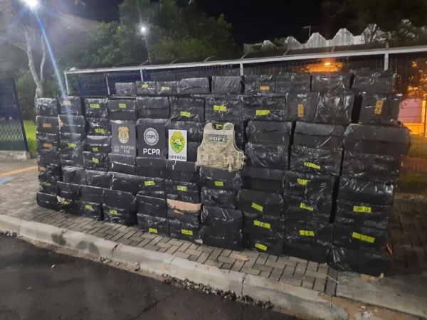 As equipes se aproximaram e localizaram aproximadamente 300 caixas de cigarros contrabandeadas do Paraguai.