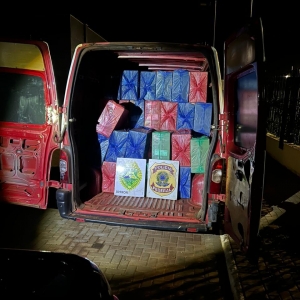 O veículo estava carregado com pacotes de cigarros contrabandeados.