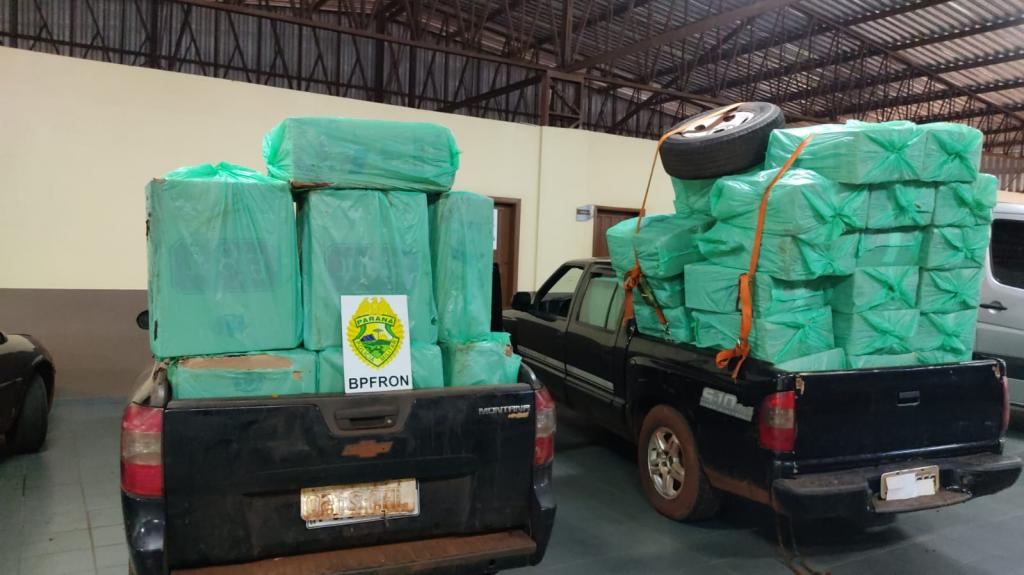 Com a aproximação policial, os indivíduos fugiram abandonando quatro veículos carregados com 7.750 pacotes de cigarros contrabandeados.
