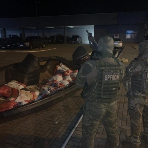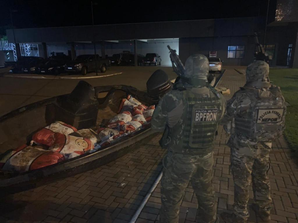 Na aproximação dos policiais, os criminosos empreenderam fuga em meio a mata ciliar fechada, abandonando no local veículo e embarcação com carregamento de origem paraguaia.
