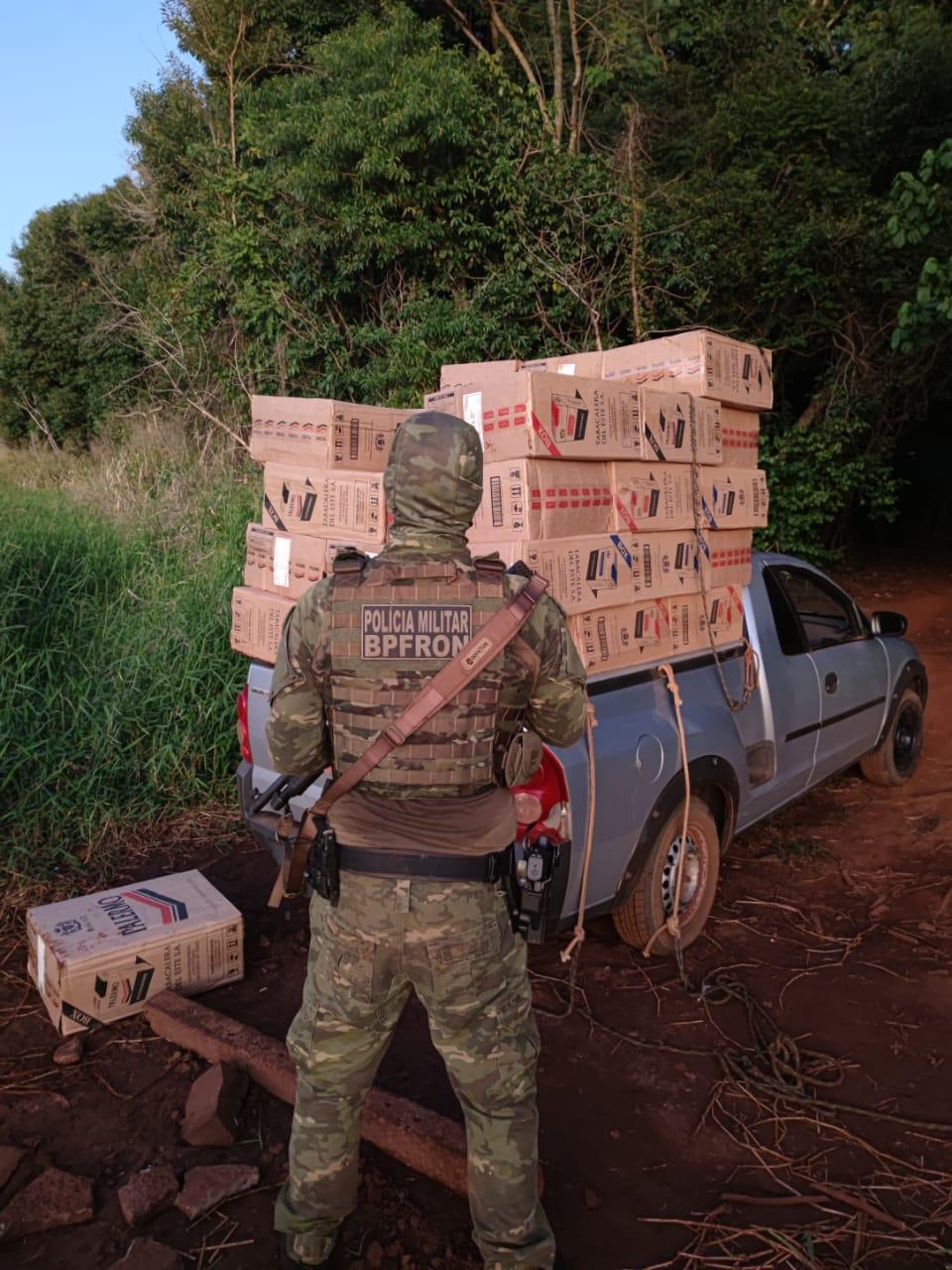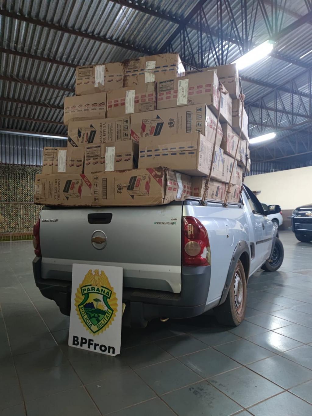 O veículo estava carregado com 2.500 pacotes de cigarros contrabandeados. Os cigarros e o veículo foram encaminhados para a Receita Federal de Guaíra.