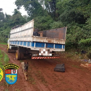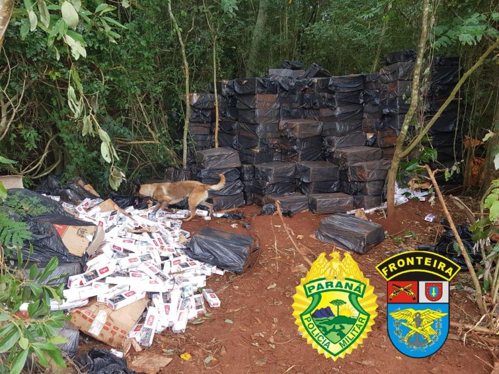 Em ação da Operação Hórus, neste sábado (13) , Policiais Militares do Pelotão de Operações com Cães do BPFron - Batalhão de Polícia de Fronteira realizavam patrulhamento na área rural de Entre Rios do Oeste quando nos fundos de uma plantação próximo a uma mata foi visualizado uma movimentação de aproximadamente 10 pessoas realizando o carregamento de caixas de cigarros em um caminhão.