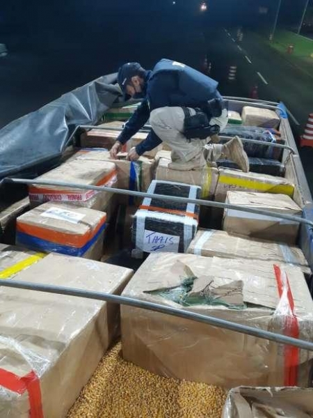 Questionado pelos agentes, o condutor relatou que carregou os produtos ilícitos junto a 32 toneladas de milho em Ponta Porã/MS e pretendia descarregá-los em Maringá, região noroeste do Estado.