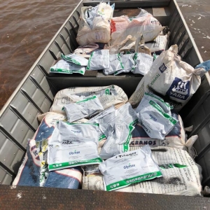 No total, foram apreendidos: 15.310 kg de maconha, 5.300 caixas de cigarros, 300 kg de agrotóxicos, 60 aparelhos celulares, 13 caminhões/carretas, 27 veículos (carros, van e moto), 7 embarcações, 14 pistolas, 2 fuzis, 7.300 munições de diversos calibres e acessórios para armas.