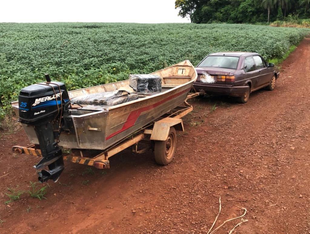 No local foi apreendida uma embarcação de 6m com motor 25hp, carretinha reboque de embarcações, veículo Santana, veículo Fiorino carregados com aproximadamente 40 caixas de cigarros paraguaios, 08 volumes diversos com eletrônico, essência de narguilé, representando um prejuízo de aproximadamente R$150.000,00 (cento e cinquenta mil reais) aos criminosos da região.