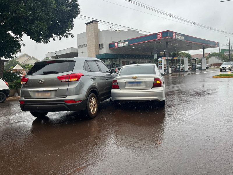 Um acidente de trânsito acinteceu na Avenida Santo Cristo, no centro de Nova Santa Rosa, no fim da manhã desta sexta-feira, dia 20 de junho em frente à rodoviária municipal, enquanto chovia na cidade.