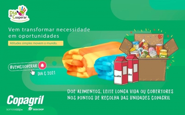 Neste ano, cada unidade da Copagril (lojas agropecuárias, postos, supermercados e indústrias) arrecadarão alimentos, leite longa vida, cobertores e também outros produtos que as unidades identificarem como necessários em suas áreas de ação. Essas arrecadações serão recolhidas até o Dia de Cooperar e posteriormente repassadas a entidades locais que necessitam de apoio. “Todos os cooperados, clientes e colaboradores são convidados a participar desta ação que simboliza o cooperativismo em sua essência. Para participar entre em contato com a Unidade Copagril de sua localidade ou leve alimentos, leite longa vida ou cobertores diretamente aos pontos de coleta”, completa.