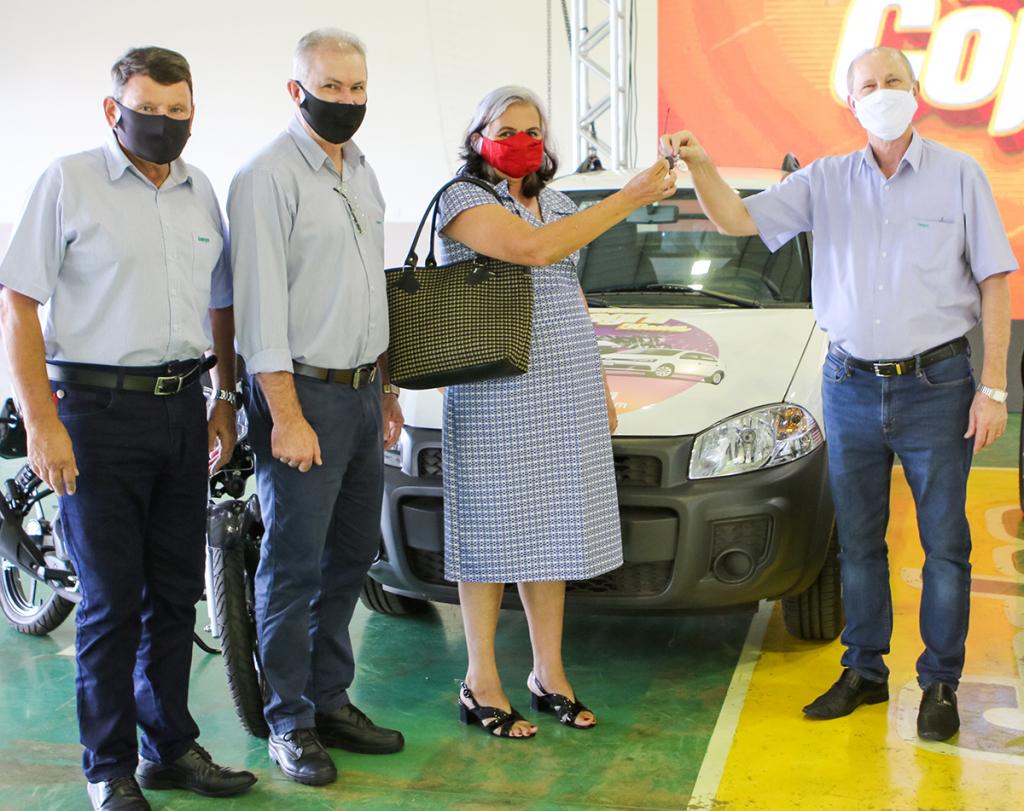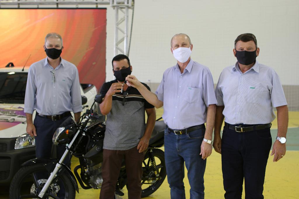 O diretor-presidente, Ricardo Sílvio Chapla, diretor vice-presidente, Elói Darci Podkowa, e o diretor-secretário, Márcio Buss, realizaram a entrega simbólica das chaves aos ganhadores: Ailton Simião, de Guaíra, e Deonisio Francziskowski, de Pato Bragado, que ganharam uma motocicleta Yamaha YBR Factor 0 km, cada; Célia de Sá Stein e Ari Trento, ambos de Marechal Cândido Rondon, que ganharam um FIAT Strada 0 km, cada; e o ganhador do principal prêmio da campanha, Adair Claúdio Schweig, de Nova Santa Rosa, que ganhou um FORD Ecosport 0 km.