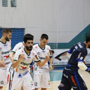 No primeiro tempo, a Copagril Futsal jogou com bastante propriedade diante de sua torcida e abriu o placar aos três minutos, com gol de Jhonny. Aos 14, Jhonny, camisa 14, fez a finta e voltou a marcar. Dois minutos se passaram, Barbosinha recebeu a bola na cobrança de falta e chutou forte de primeira para balançar a rede. Placar parcial Copagril 3x0.