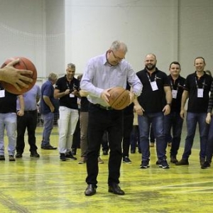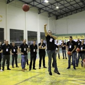 Ao final da palestra, ela conduziu uma atividade prática em quadra, desafiando os grupos participantes a realizarem o Arremesso Livre, como uma forma de promover entre eles o trabalho em equipe e superação.