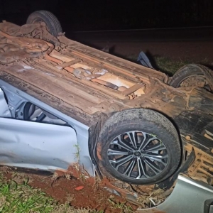 O capotamento aconteceu quando ele seguia no sentido a Assis Chateaubriand e um veículo que não foi identificado o fechou e para não bater ele puxou para a direita saindo da pista e capotando fora da rodovia.