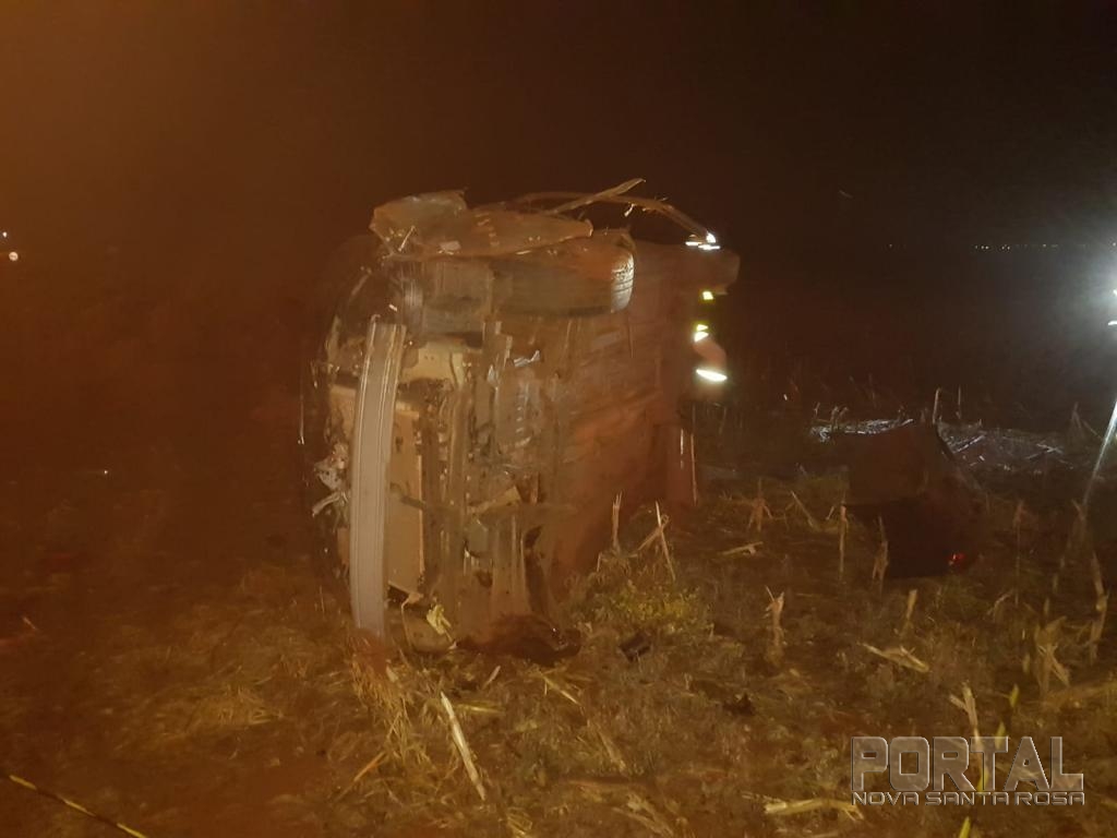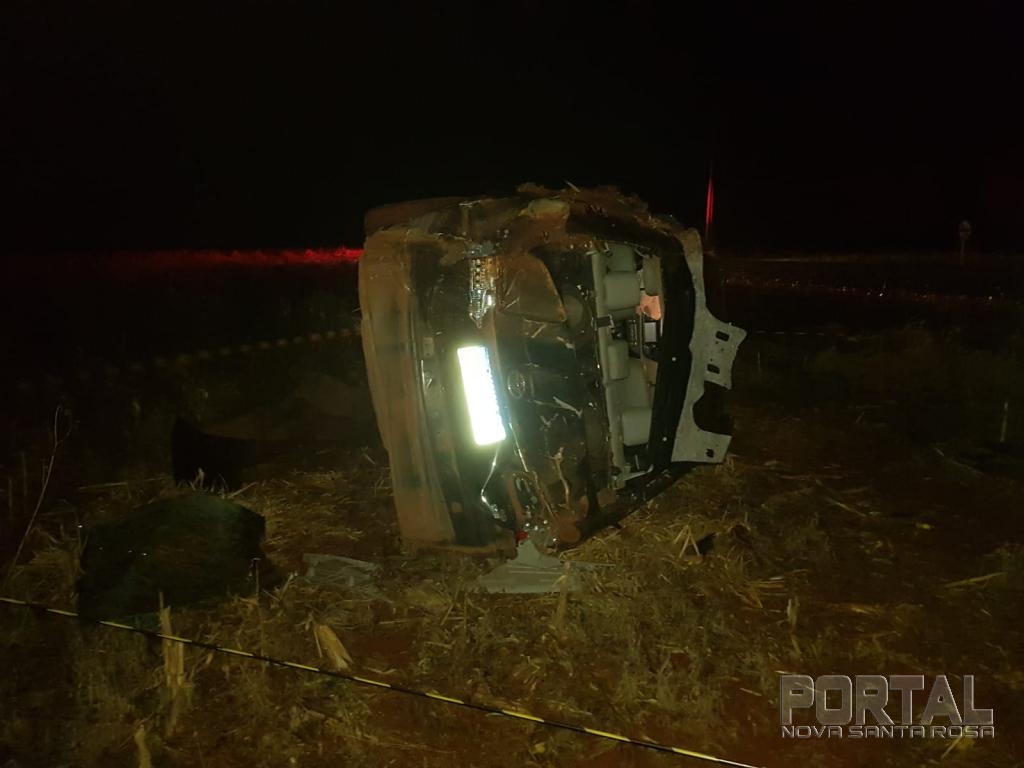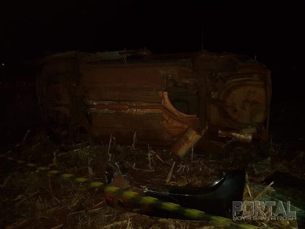 O acidente aconteceu próximo a empresa I.Riedi, onde o condutor de um Corolla seguia sentido Palotina, quando perdeu o controle da direção, saiu a pista, capotou diversas vezes e parando cerca de 150 metros dentro da lavoura.