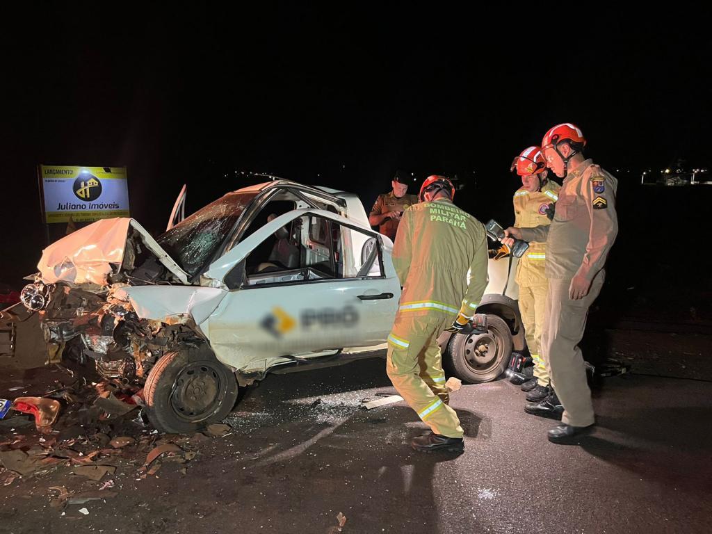 O acidente envolveu dois carros, um Fiat Strada e um Ford Fiesta.
