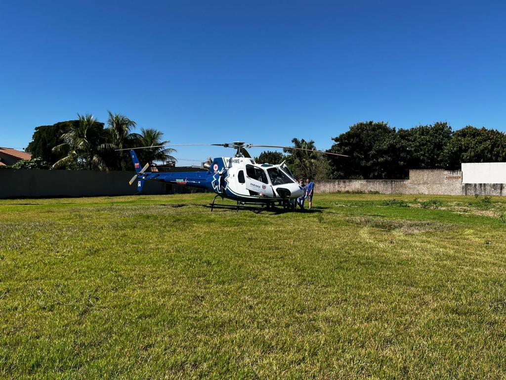 Após sofrer queimaduras, um menino com cerca de 10 anos, morador do interior de Nova Santa Rosa, acabou de ser transferido de helicóptero para o Hospital Universitário de Cascavel.