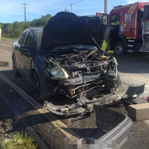 Ao chegar no local, os bombeiros encontraram três pessoas fora de um dos veículos, com ferimentos leves. Além disso, o mesmo carro teve princípio de incêndio, que foi controlado pela equipe.