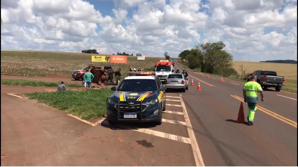 Criança, de aproximadamente 5 anos, morre após ser ejetada de carro que capotou na tarde desta sexta-feira (16), na BR 369, entre Cascavel e Corbélia.