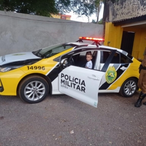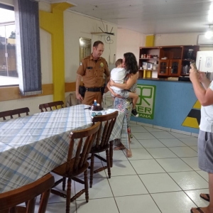 Por volta das 12h00min desta segunda-feira (08), esteve fazendo visita a sede da Terceira Companhia da Polícia Rodoviária em Marechal Cândido Rondon, o garoto Rômulo, juntamente com seus pais.