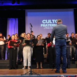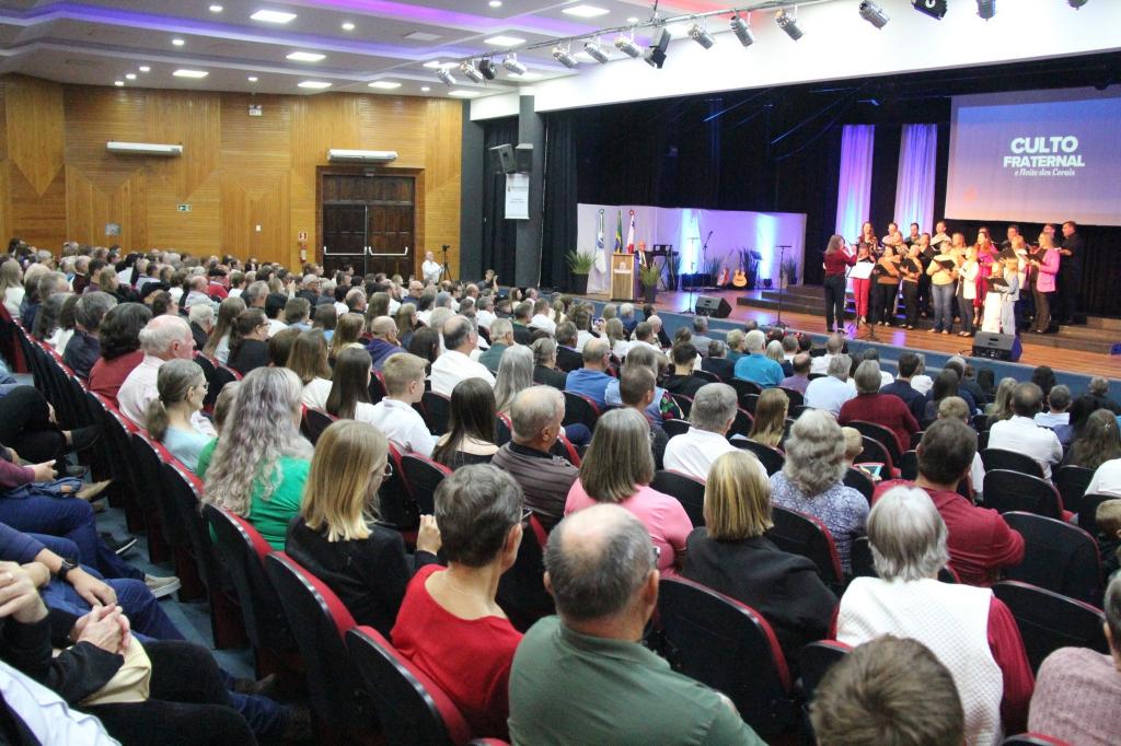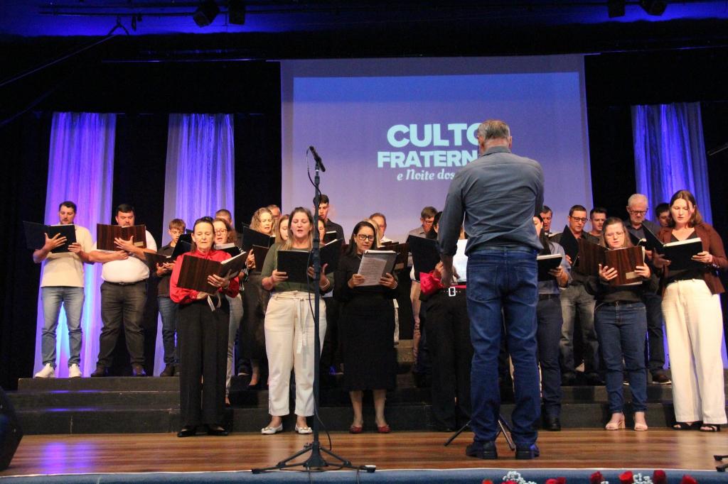 A noite de sábado (05) ficou marcada por muitas bênçãos. Resume-se assim o Culto Fraternal e Noite dos Corais, que foram realizados no Teatro Municipal Gustavo Fischer e prestigiados por um grande público, formado por diversas denominações religiosas.