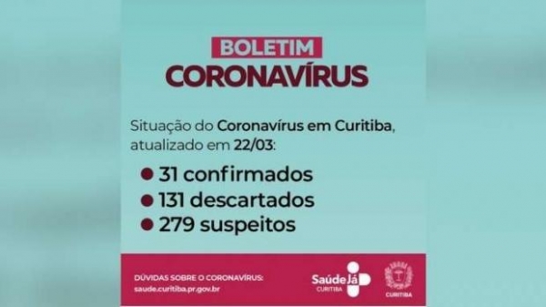 Com os novos registros, até o momento 31 o número de casos confirmados de covid-19 em moradores da capital paranaense.