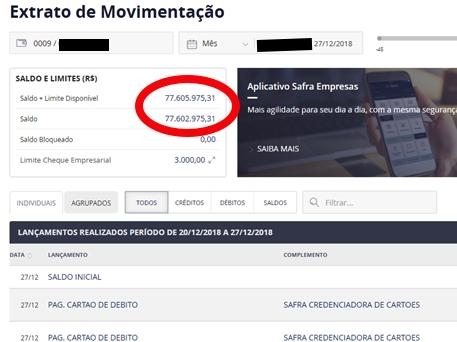 "Daí você abre o internetbank e quase tem um mini infarto, mas depois descobre que foi um erro do banco. Milionário por meio dia. 77 milhões já dava para passar o réveillon bem.", brincou o comerciante.