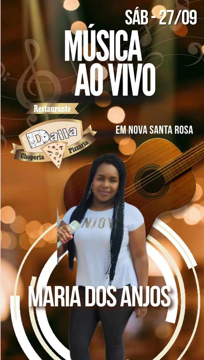 O fim de semana será de muita boa música e gastronomia em Nova Santa Rosa. A Dalla Pizzaria, Lanchonete e Restaurante recebe neste sábado, dia 27 de setembro, a cantora Maria dos Anjos em uma noite especial de música ao vivo.