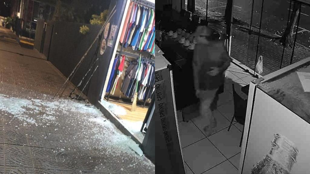 As câmeras de segurança do estabelecimento registraram a ação criminosa por volta das 3h40. As imagens mostram um homem magro, alto, de pele parda, vestindo moletom preto e boné, que após cometer o furto fugiu do local.