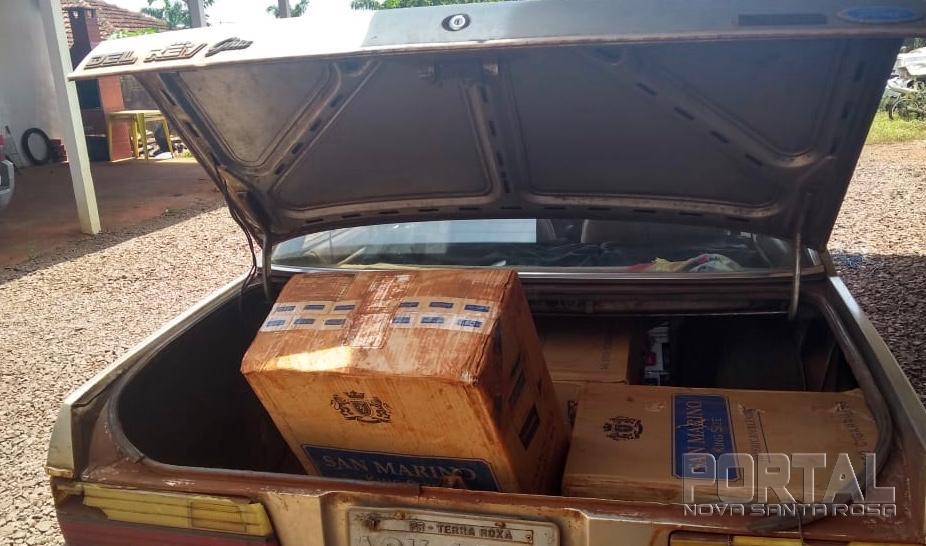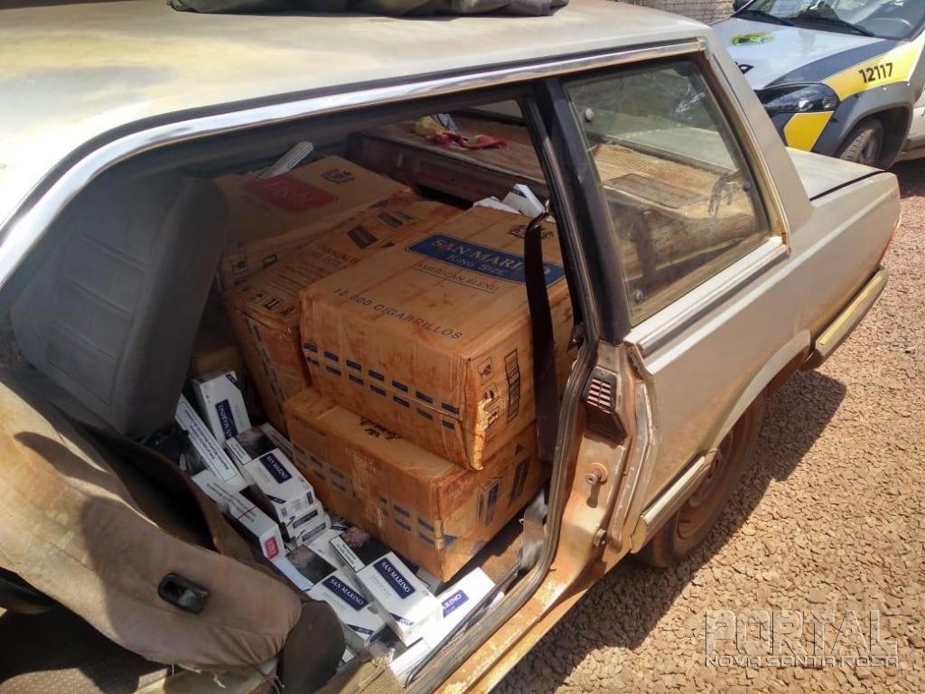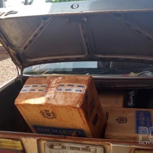 Durante a abordagem foi constatado que havia 450 pacotes de cigarro contrabandeado do Paraguai.