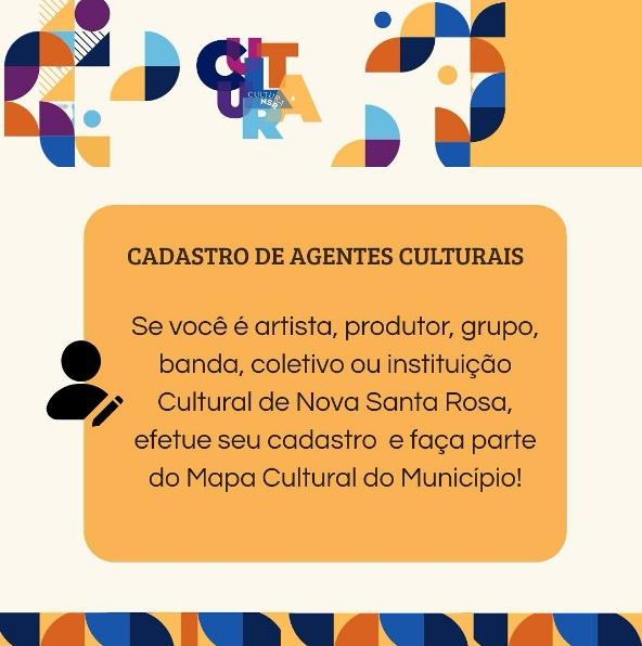 O Departamento de Cultura de Nova Santa Rosa informa que disponibilizou um formulário on-line para o cadastramento de agentes e entidades culturais do município.