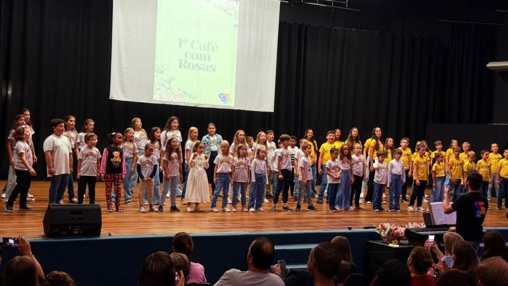 O Teatro Municipal Gustavo Fischer foi palco na noite de segunda-feira (12) de um momento repleto de emoção, afeto e arte: o 1º Café com Rosas. O evento foi uma homenagem especial às mães, promovido pelo Departamento de Cultura de Nova Santa Rosa junto aos corais “Sementes do Amanhã” e “Ao Amanhecer”.