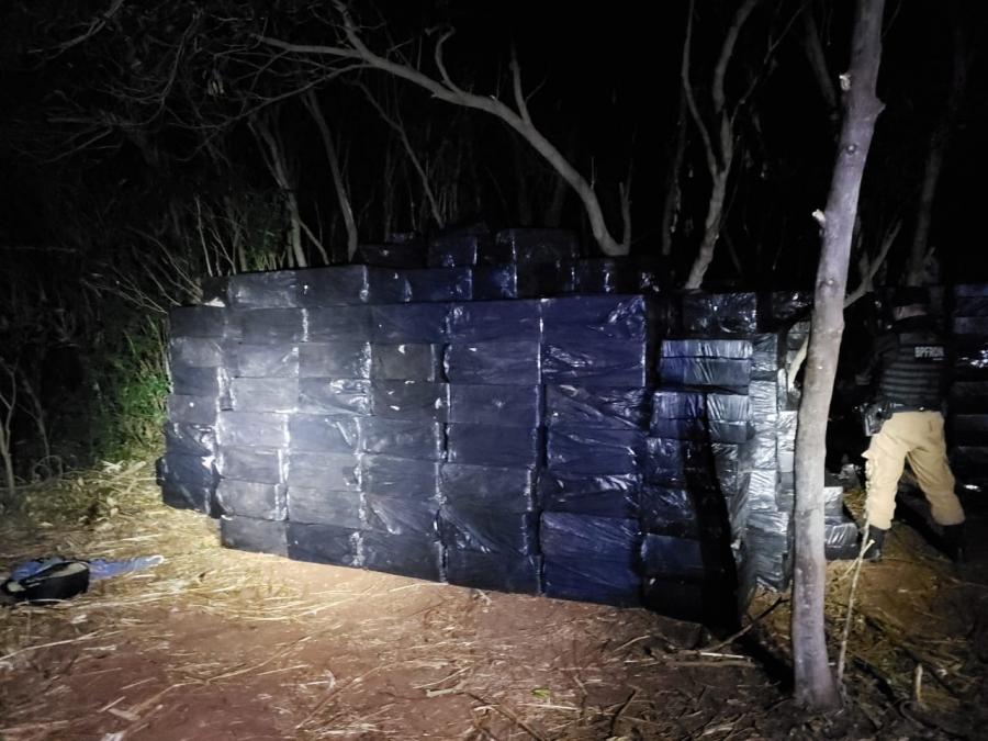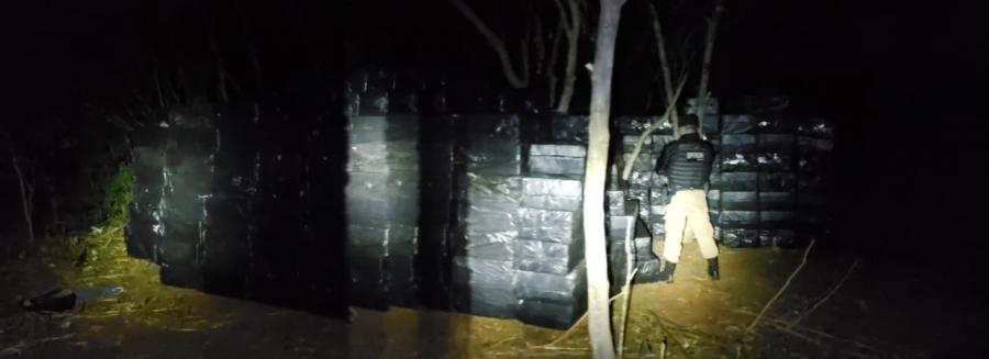 Cerca de 800 caixas de cigarros de origem paraguaia foram apreendidas causando um prejuízo aos criminosos de mais de um milhão de reais. Após uma busca rápida nas proximidades as equipes localizaram um homem suspeito.