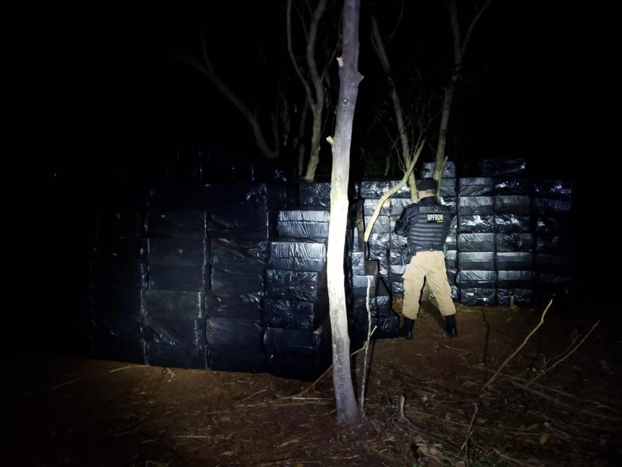 Um depósito com 800 caixas de cigarros contrabandeados, foi descoberto pelos policiais militares do BPFron (Batalhão de Polícia de Fronteira), na noite de sábado (10), no interior do município de Entre Rios do Oeste.