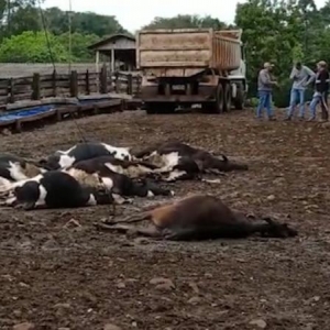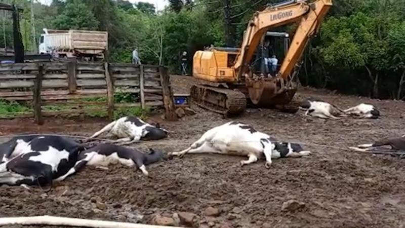 Uma descarga elétrica matou 19 vacas em uma propriedade na comunidade Creolin no interior de Saudade do Iguaçu, no sudoeste do Paraná, nesta terça-feira (16).
