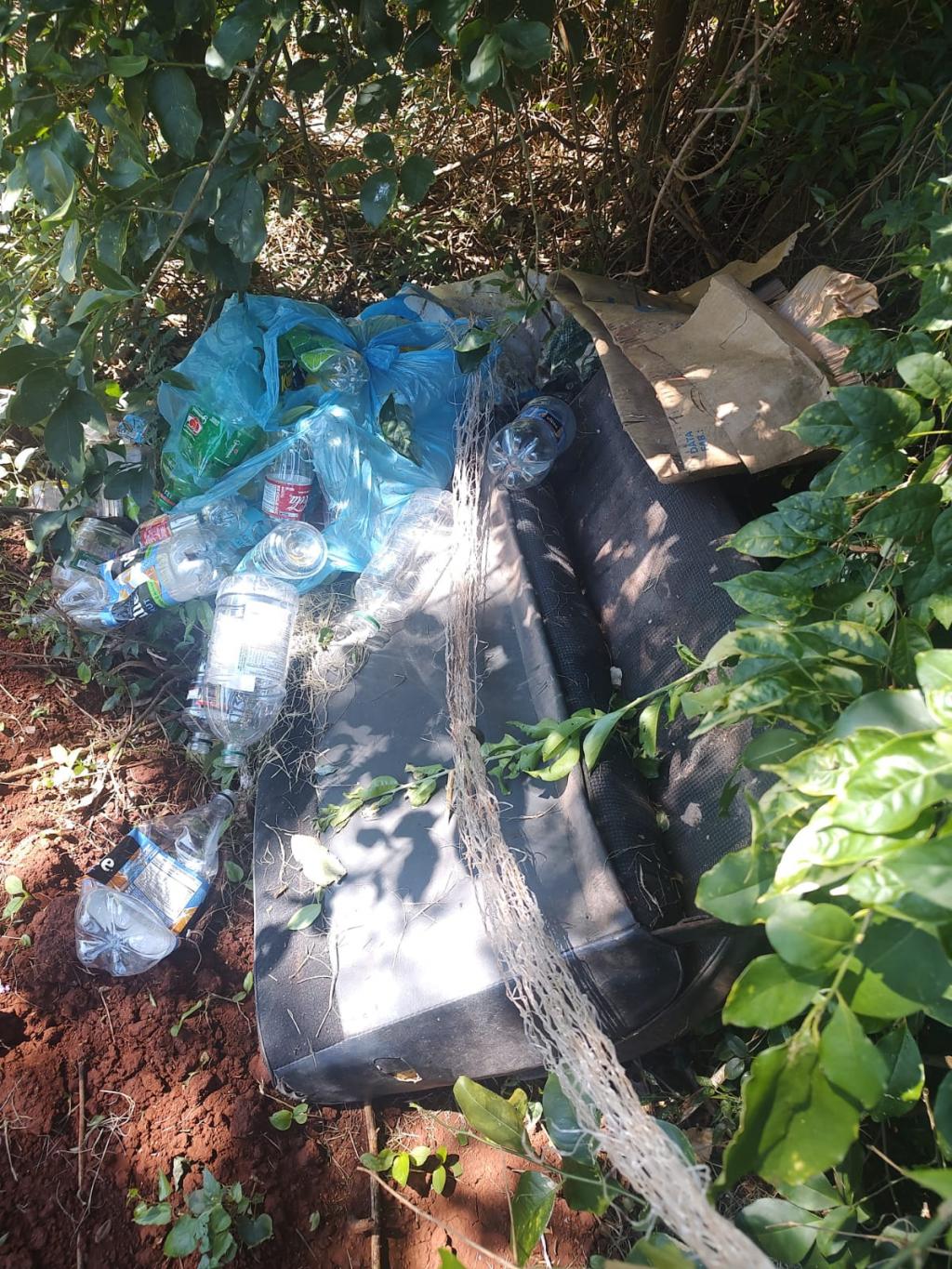 Na manhã desta segunda-feira (16), moradores da Linha Guaçu, estrada para a pedreira, no interior de Nova Santa Rosa, encontraram uma grande quantidade de lixo descartada de forma irregular à beira do mato.