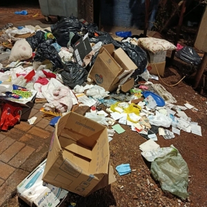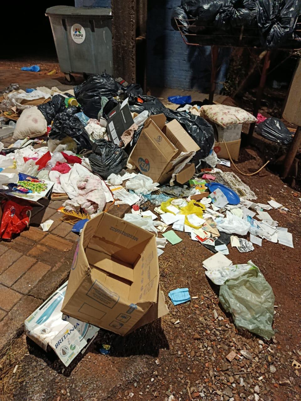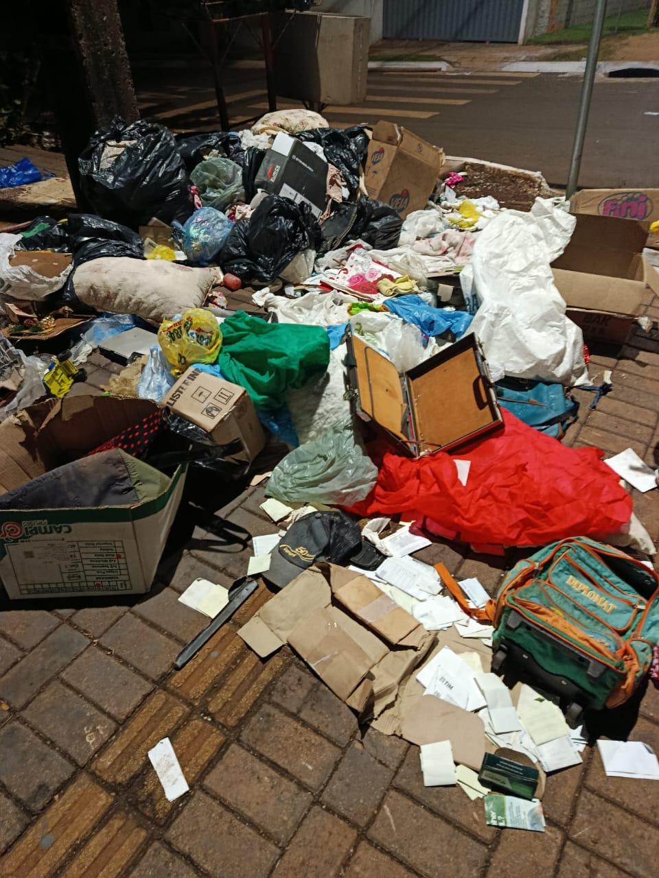 A imagem enviada à nossa equipe mostra sacos, papéis, caixas de papelão e demais itens jogados ao chão. O cenário é de completa falta de responsabilidade por parte da pessoa que realizou tal ação perante o espaço público.