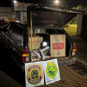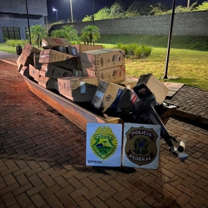 Uma pessoa foi detida com cigarros contrabandeados, barco de alumínio equipado com dois motores, e pneus de carro e moto em porto clandestino localizado no distrito de Porto Mendes, em Marechal Cândido Rondon, na madrugada deste domingo (28). Prejuízo estimado ao crime organizado é de R$ 250 mil.